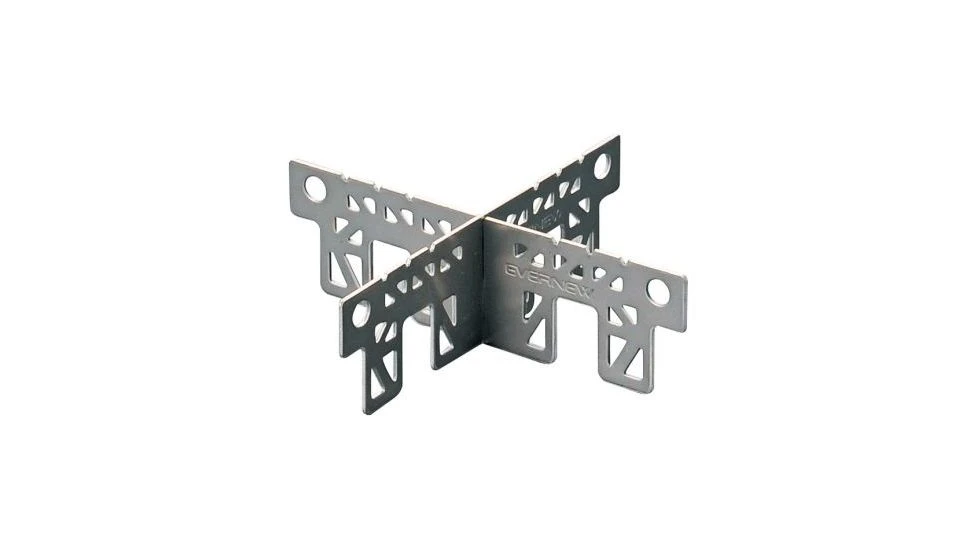 The Cross Stand 2 fits perfectly on the Evernew Ti Alcohol Stove and gives an optimal height for better combustion efficiency. Stores flat on the bottom of Evernew’s Ti Cup 400FD. It can be used with solid fuel as well.![]()
