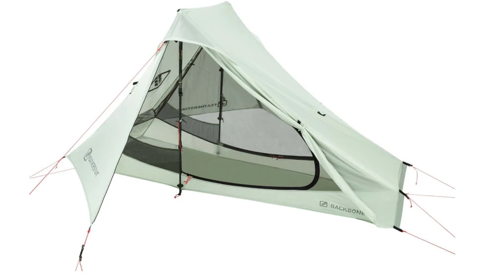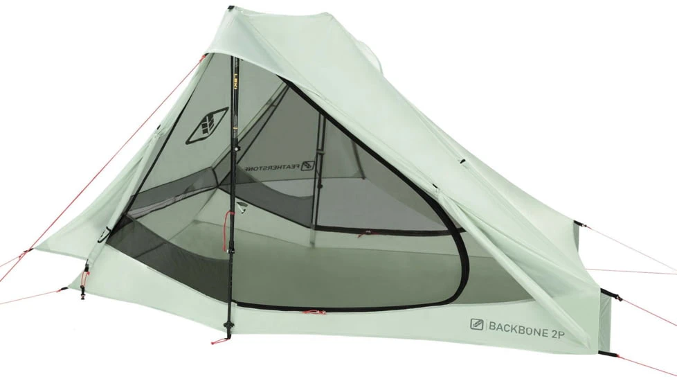 Introducing the Featherstone Backbone 1P Trekking Pole Tent – the perfect shelter for solo backpacking adventures. This ultralight tent, weighing in at nearly 2 pounds, is designed with weight savings and functionality in mind. Constructed with 20D ripstop nylon and a 2000mm waterproof coating, the tent body is built to withstand the elements and keep you dry in wet conditions. The Backbone 1P utilizes trekking poles for its structure, providing a reliable and sturdy shelter that can handle windy or inclement weather.![]()