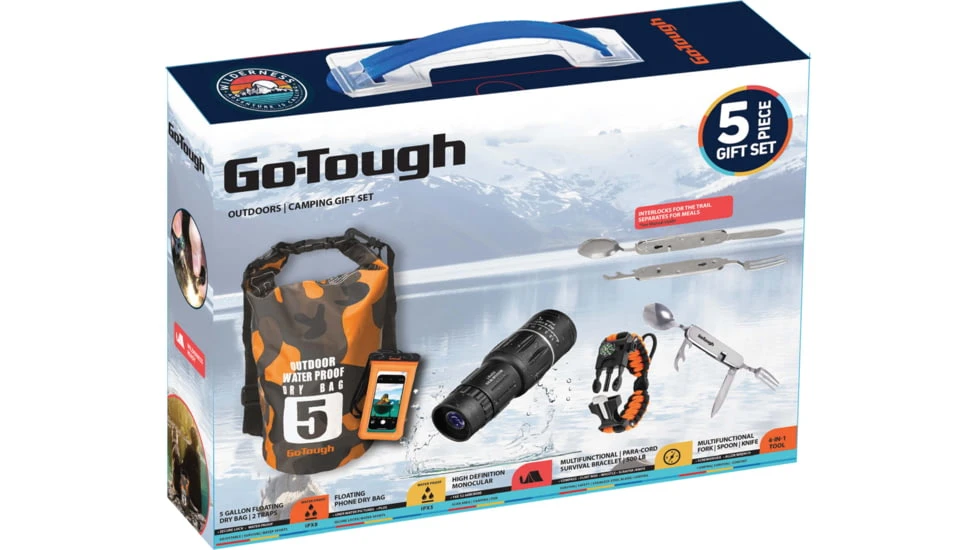 Go-Tough has been making high-quality merchandise for a number of years, and the Go-Tough 5 Piece Camping Gift Set – Phone Pouch, Dry Bag, Watch, Monocular, Fork/Spoon/Knife is their very own way of revealing how much they care.