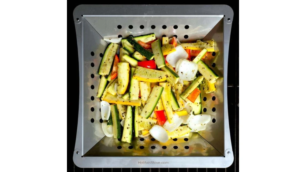 The Hot Ash Grill Basket is a durable, well-built grilling tool that will be a great accessory for your grilling kit. It is the perfect size for grilling vegetables, seafood, and other smaller cuts of meat. The small holes will allow smoke from the grill to infuse your food with a great flavor, without having to worry about the food falling into the grill.![]()