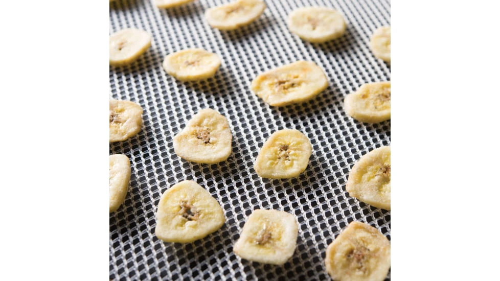 This mesh insert screen will allow you to dehydrate your food but not have to worry about small pieces falling down between trays. Includes 84in L x 14in W roll of drying screen material. Cut to any size you need. This roll will make 5 screens 14in x 16in. FDA approved for food contact.![]()