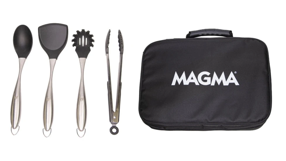 This cooking utensil set from Magma is the perfect addition for any chef enthusiast. These utensils have silicone heads with nylon core, polished stainless steel handle, and BPA/BPS free. They are stain and scratch resistant, non-porous, heat-resistant up to 400 degrees. And are suitable for all types of cookware, including those with non-stick surface coatings. They pair perfectly with our nesting cookware set or our Crossover Series cook system. Set includes a .![]()