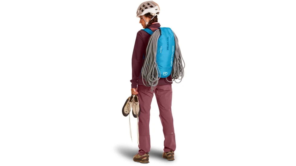 Despite its minimalism, important details such as material loops, rope fastening options and a fastening for a hydration system are still included. Cushioned shoulder straps and a soft contact back ensure optimum comfort even when carrying angular climbing equipment. The lockable valuables compartment with key clip provides a safe space for important items.