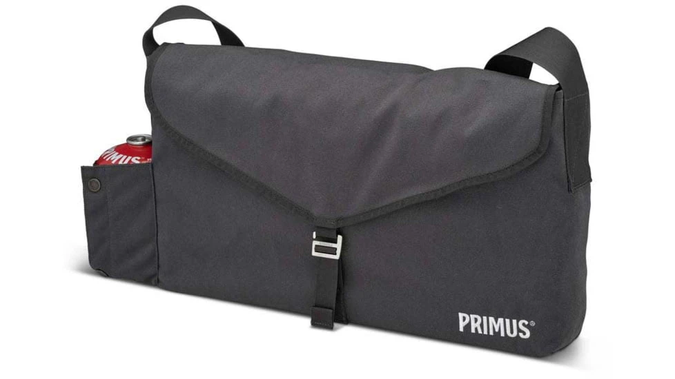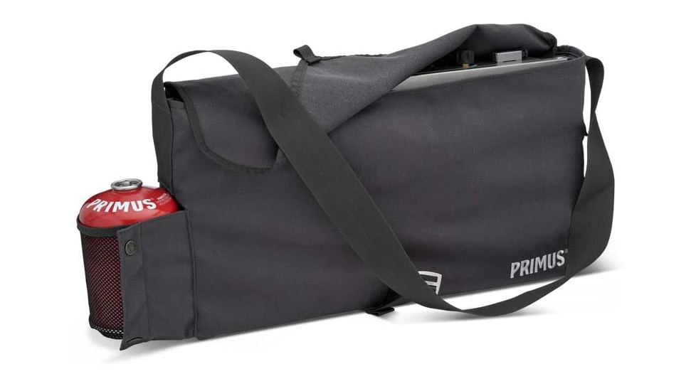 The Carry Case is a traditional messenger style silhouette and is made from durable and easy-to-clean polyester fabric that holds the Tupike or Kinjia Stove. The large top flap holds the stove in place, and helps keep crumbs, grease or other stove residue contained in the bag and not on clothing or car upholstery. An expandable can be snapped closed for a streamline look, or can hold a gas canister so everything is in one place.