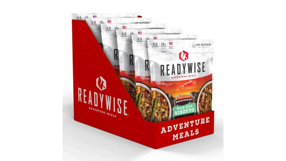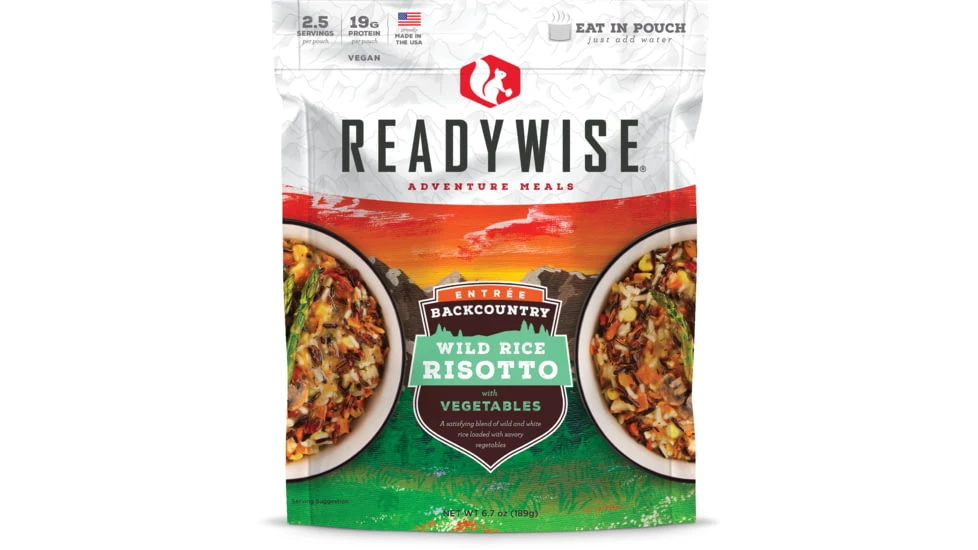 Each pouch of ReadyWiseBackcountry Wild Rice Risotto contains 2.5 servings and is resealable. These pouches are lightweight making them easily portable on any outdoor adventure. Just add water and you can eat directly from the pouch.![]()