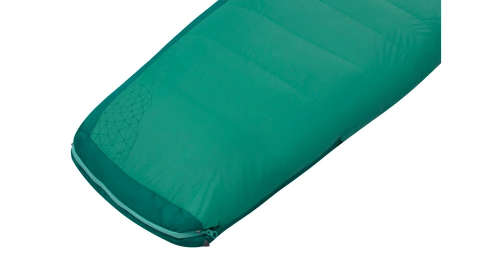 Women’s specific tapered rectangular shape for comfort and versatility, RDS 650 + Loft ULTRA-DRY Down offers excellent insulation and compressibility, Vertical chest baffles prevent down migration and cold spots, 3D side-wall baffle maximizes loft right to the edge of the bag.