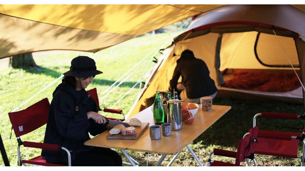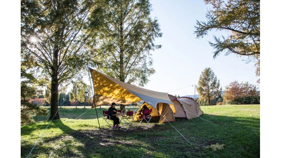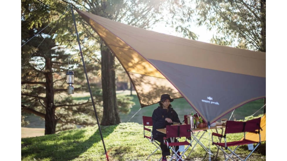 The tent’s arch frame consists of color-coded pieces to ensure easy setup for first-time use. The compact tarp acts as a shade on warm days and shelter from unexpected rain or wind.