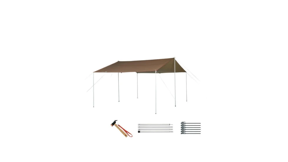 Designed in Japan, the Recta Tarp HD Pro. Set in Medium features an advanced design for durable protection from sun and precipitation. The HD construction is engineered to more efficiently channel rainfall and withstand wind pressure. Shield processing applied to the fabric provides additional UV protection and shading, that can feel 2-4 degrees cooler than tarps without. The full set includes the Recta Tarp HD, Solid Stakes, Copper Head Peg Hammer, and Carry Case.![]()