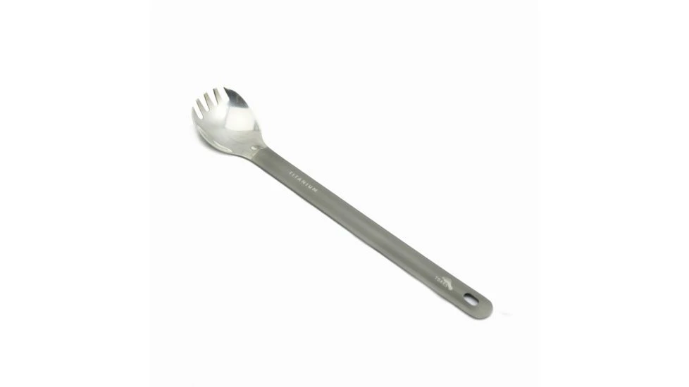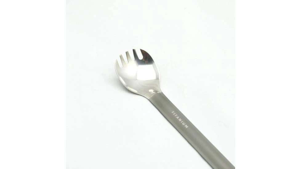 Titanium long handle spork serves double duty as both a spoon and fork; a polished head for smooth touch whilematte finish handle gives solid holding.![]()