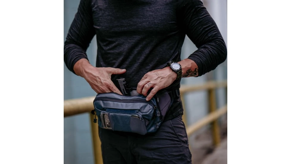 This tactical Fanny Pack is large enough to conceal your every day carry while still maintaining its low-profile functionality. Whether you’re on duty or off, this pack is ready for whatever you have in store. Loop-lined back CCW compartment with lockable zippers. External cellphone pocket with touch screen window can be folded down to use as NAV board and adjusts to fit most cellphones. Exterior flaps on cellphone pocket tuck in for photo or video surveillance. Hidden access pocket for the SOCP dagger or other tools. Laser-cut attachment points for SOCP dagger on back panel. Grosgrain loop attachment points for SOCP dagger. Adjustable waist strap.![]()
